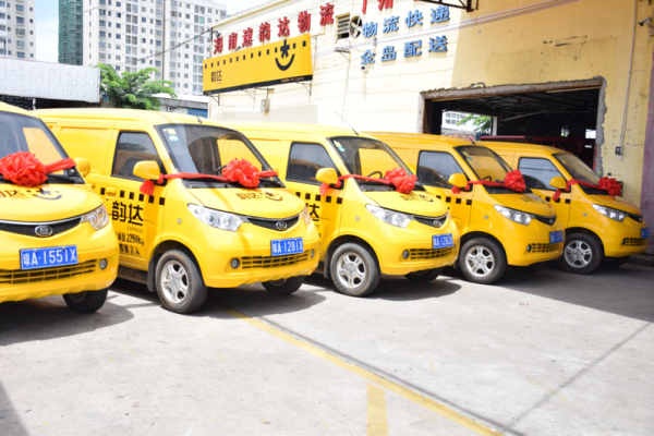 7月2日,海南韵达快递与海南科运在海口市韵达园区举行战略合作暨交车仪式,科运向韵达交付了第一批有韵达标识的纯电动物流车。