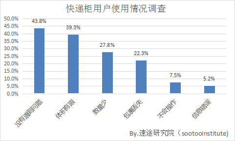 从用户使用快递柜的反馈情况来看,其中有43.8%的用户表示在使用的过程中并未遇到过问题,由此可见智能快递柜在质量、安全等方面都有良好的表现,这也是智能快递柜在市场快速发展的因素之一,不仅减轻了快递员的压力,也确保了快递包裹的时效性,提升了整个电商行业的物流水平。