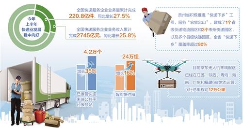 近年来,贵州省积极推进“快递下乡”工程,服务“农货出山”,建成了1个省级快递物流园区和3个市州快递园区,以及多个县级快递园区,全省“快递下乡”覆盖率超过90%。