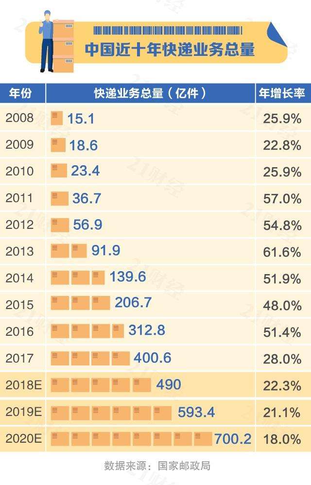 成长之路:十年翻26倍,快递量增速见顶