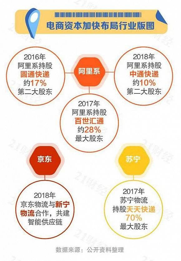经过激烈的市场竞争,顺丰、“四通一达”等7家快递公司得以成功上市,造就了顺丰董事长王卫等亿万富豪,与此相对,被行业巨头挤压的中小快递企业却面临消亡。但市场没有永恒的胜者,阿里、京东等入局,从自建物流平台到并购快递巨头,电商布局会否改变快递版图?