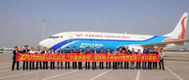 10月22日上午,从南昌起飞的中通快递波音737-800型全货机经过约2小时飞行,平稳降落在天津滨海国际机场,标志着中通快递在航空货运业务方面实现了新