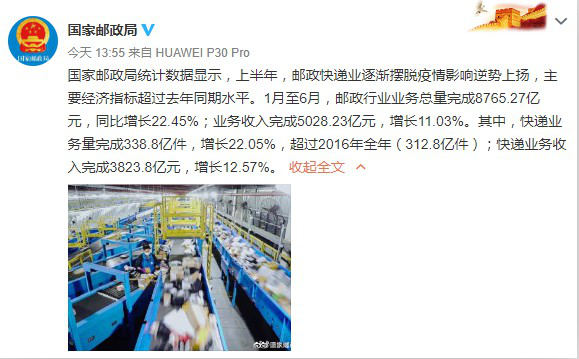 国内快递业务量增长之迅猛,令全球瞩目。国家邮政局14日统计数据显示,上半年国内快递业务量高达338.8亿件。这已经超过2016年全年的312.8亿件,而完成这一壮举仅仅只用了三年多时间。