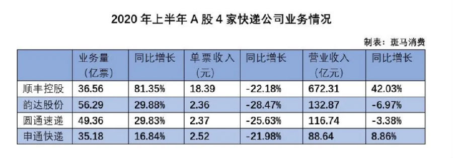 从上述表格汇总的营收数据可以看出,顺丰的表现着实惊艳,连续3个月的业务量均保持在80%以上,远高于行业平均,上半年的业务总量和市占率更是首次反超申通,让人刮目相看。