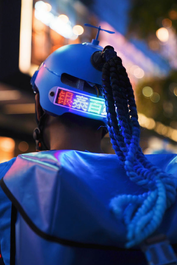 优选的蓝骑士专驻银泰百货门店,轮班配送商场内的“定时达”订单。饿了么为驻店蓝骑士升级了装备,打造专属配送载具。不同于普通外卖配送箱,采用了双肩背包的形式,能随身携带,并防水防雨、保护货品,还能满足单次背5-8单的配送需求。