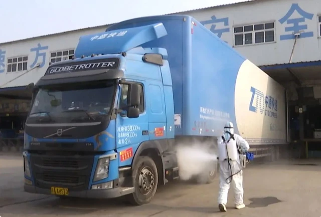 中通快递出发前消杀病毒