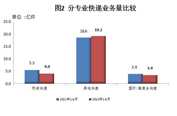 细分业务类别来看,1-6月份,深圳市同城业务量累计完成4.0亿件,同比下降27.0%;异地业务量累计完成19.2亿件,同比增长3.5%;国际/港澳台业务量累计完成3.4亿件,同比下降12.8%。