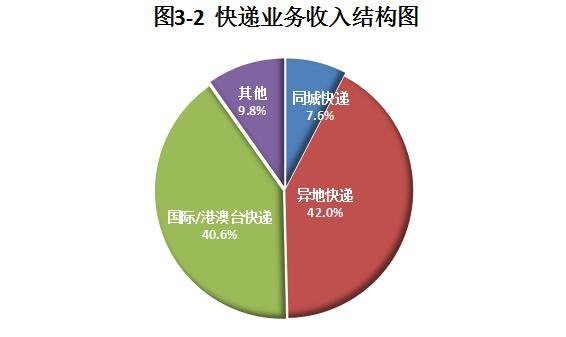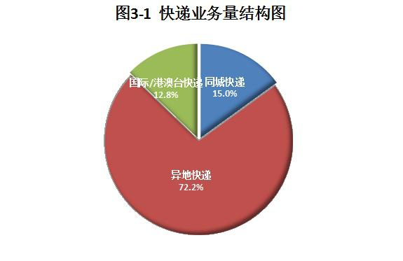 就业务量及业务收入占比来看,1-6月份,深圳市同城、异地、国际/港澳台快递业务量分别占全部快递业务量的15.0%、72.2%和12.8%;业务收入分别占全部快递收入的7.6%、42.0%和40.6%。与去年同期相比,1-6月份,深圳市同城快递业务量的比重下降4.6个百分点;异地快递业务量的比重上升5.8个百分点;国际/港澳台业务量的比重下降1.2个百分点。